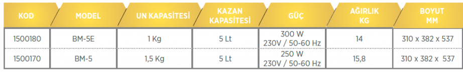 – Kazan, çırpma teli, hamur kancası ve palet ile beraber